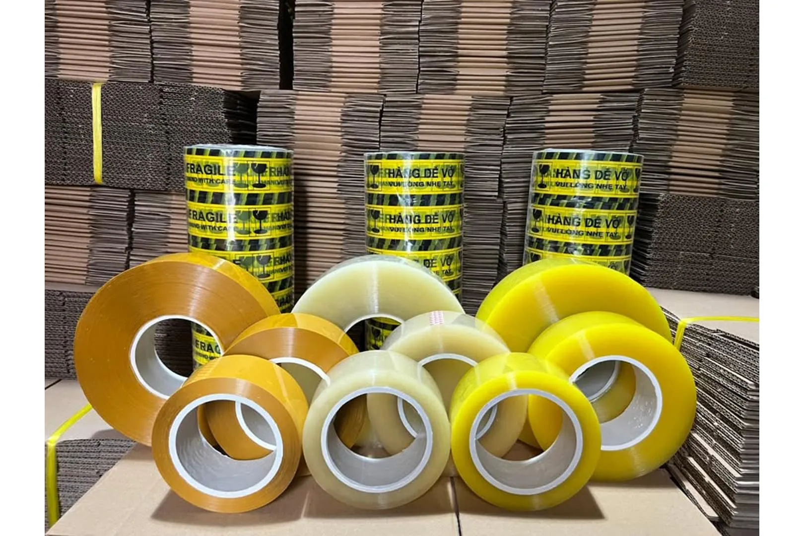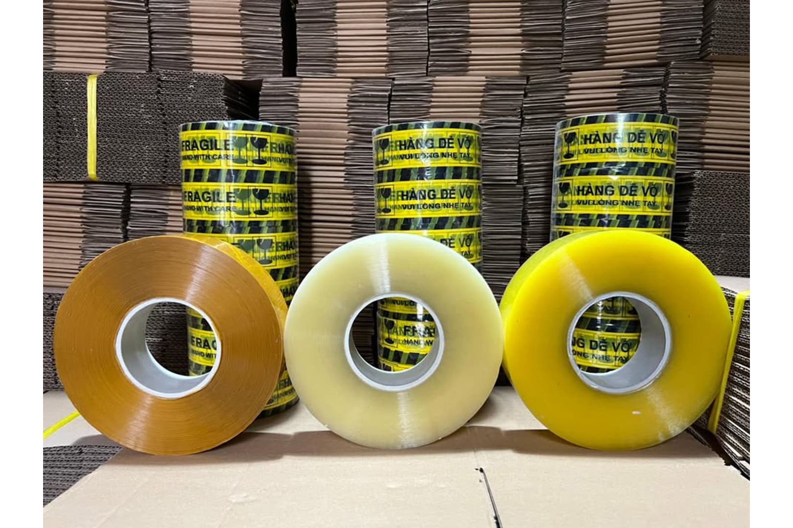 Gửi hàng xa, xuất khẩu: nên chọn băng keo tốt hơn như solvent hoặc hot-melt để chống bung thùng.